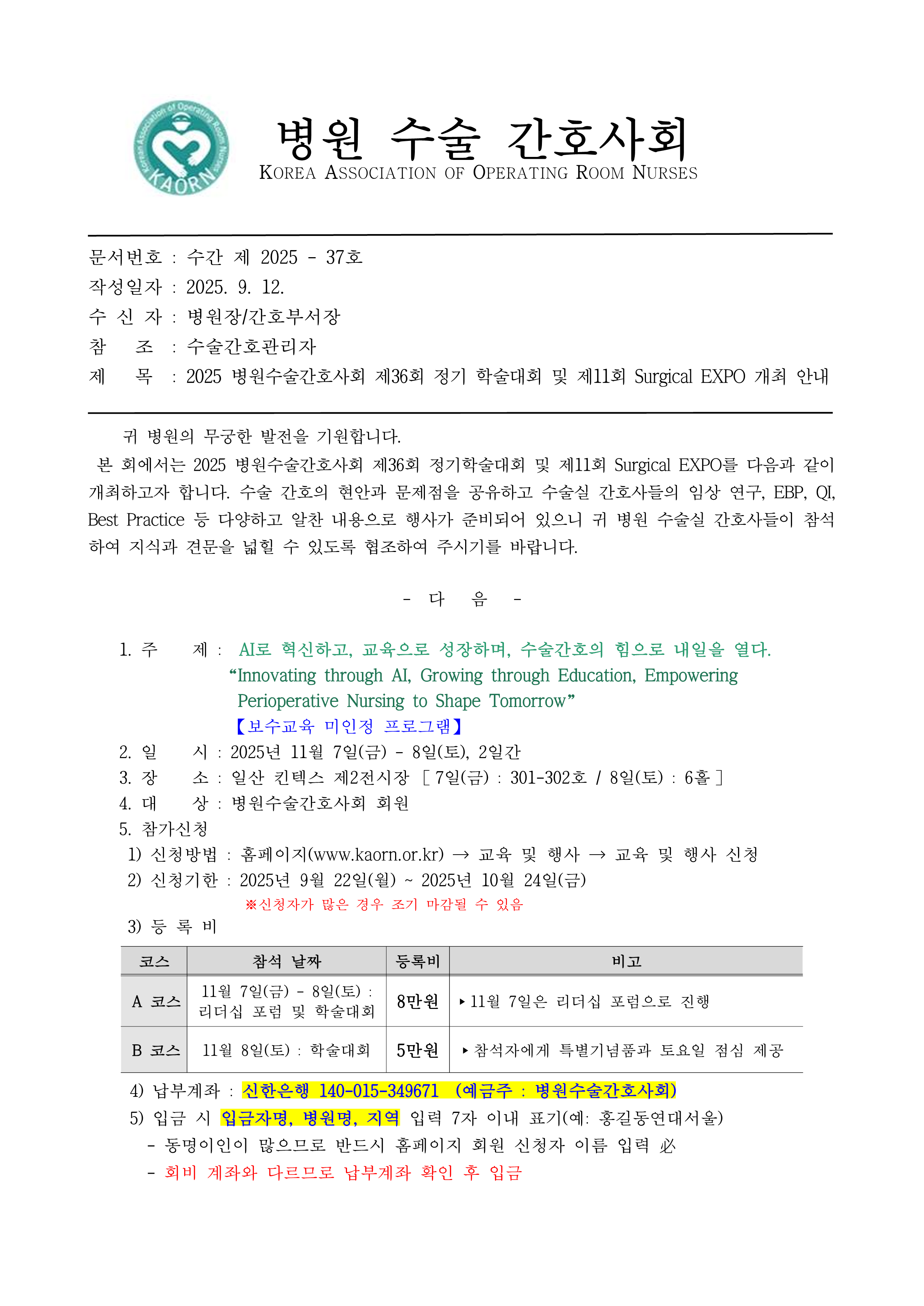 2025년 제36회 정기학술대회 및 제11회 Surgical Expo
