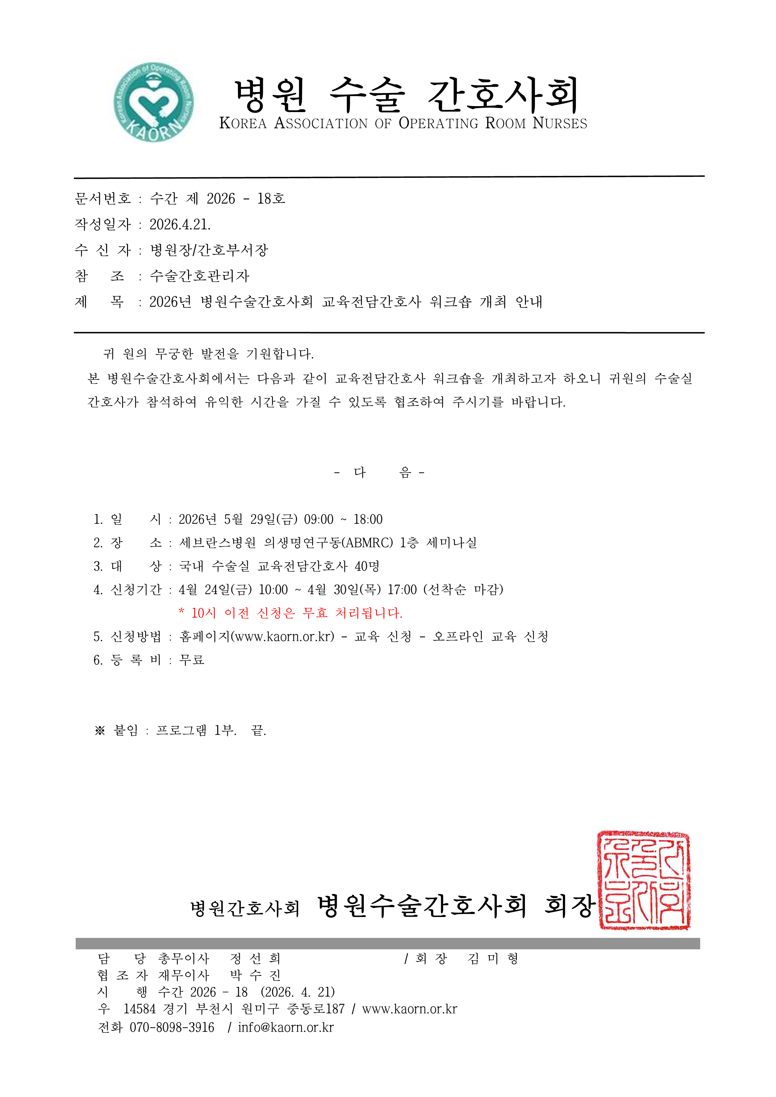 2026 KIMES 병원수술간호사회 멸균세미나(챔버 아카데미)