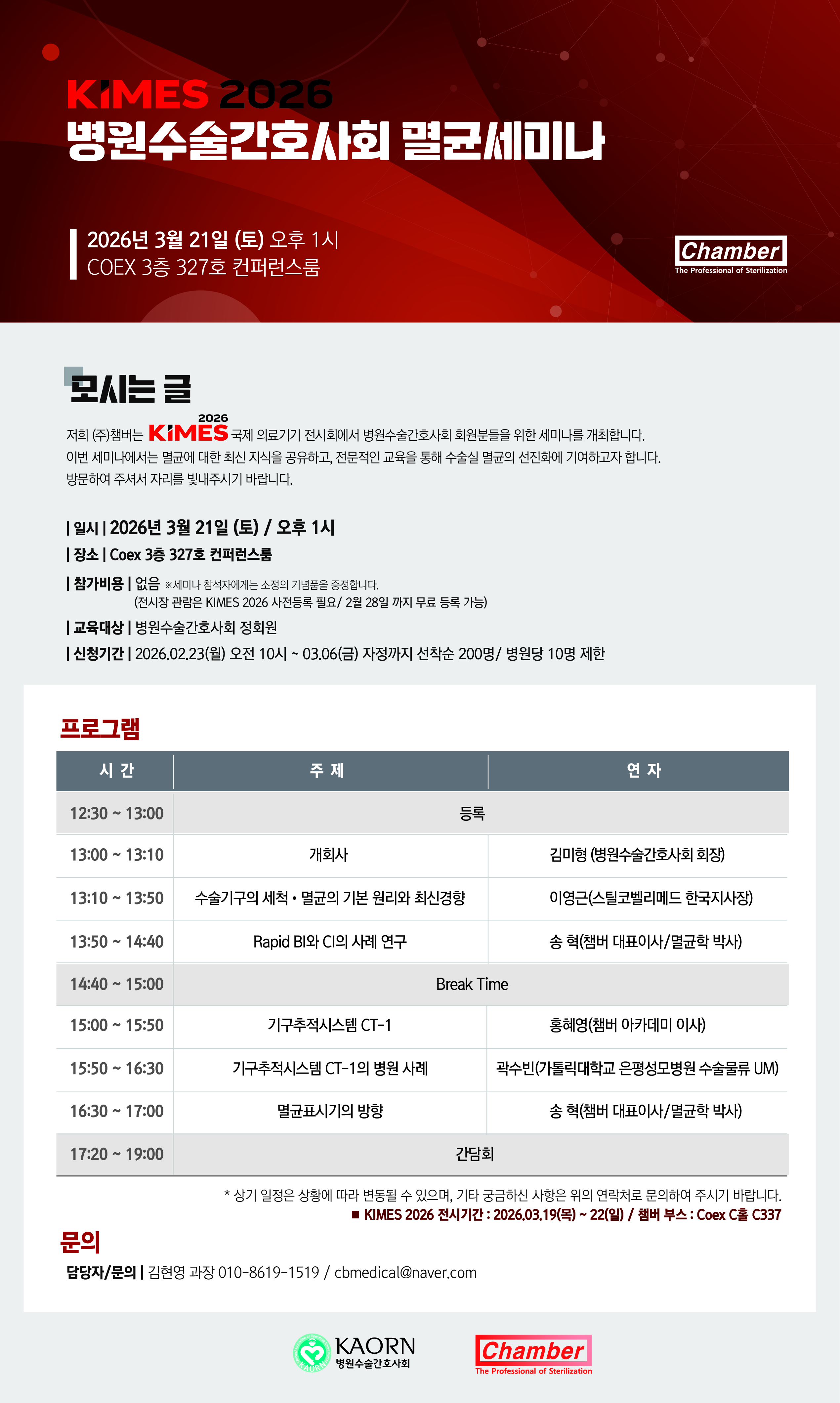 2026 KIMES 병원수술간호사회 멸균세미나 (챔버 아카데미)