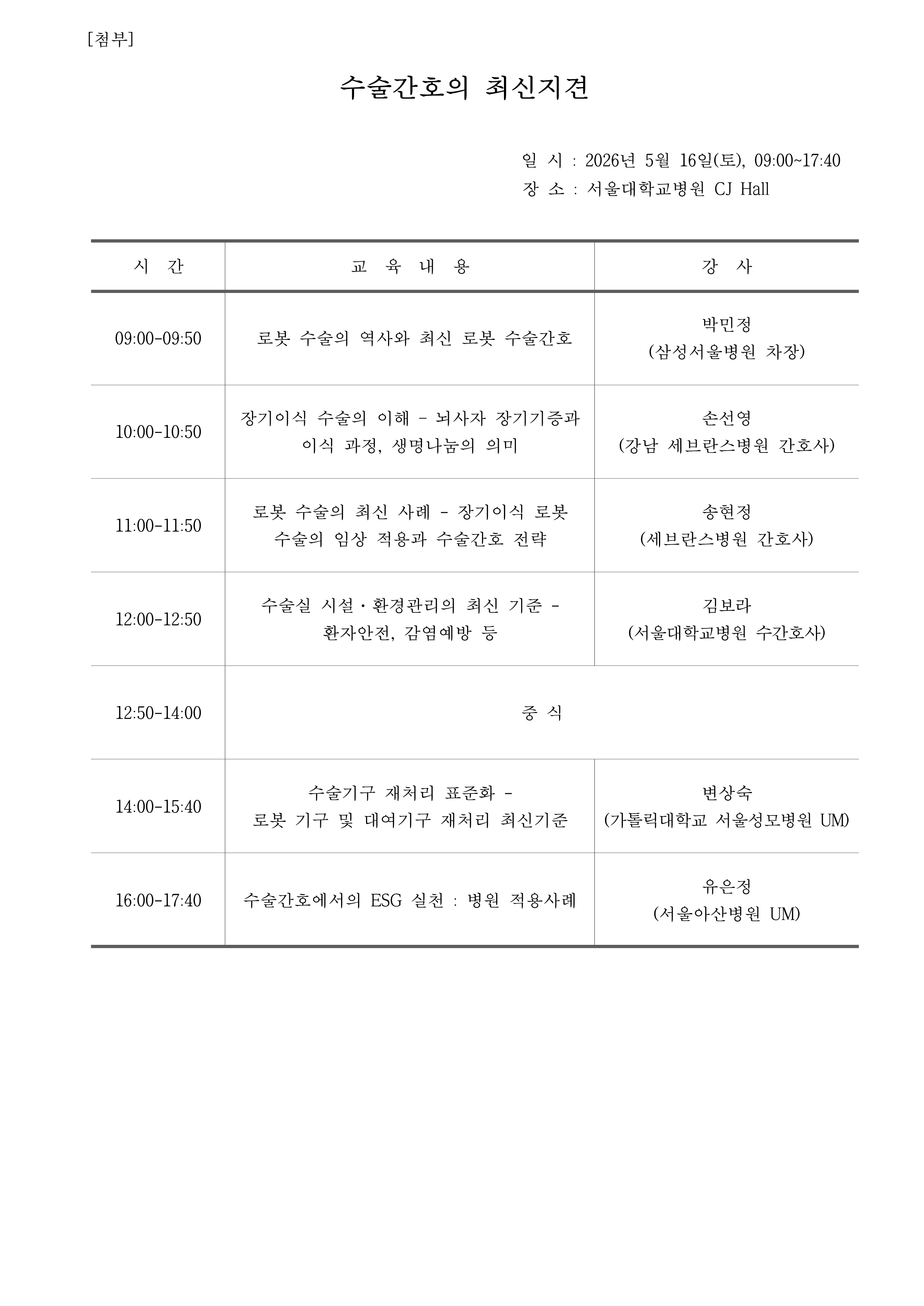 2026년 1차 보수교육 [수술간호의 최신지견]