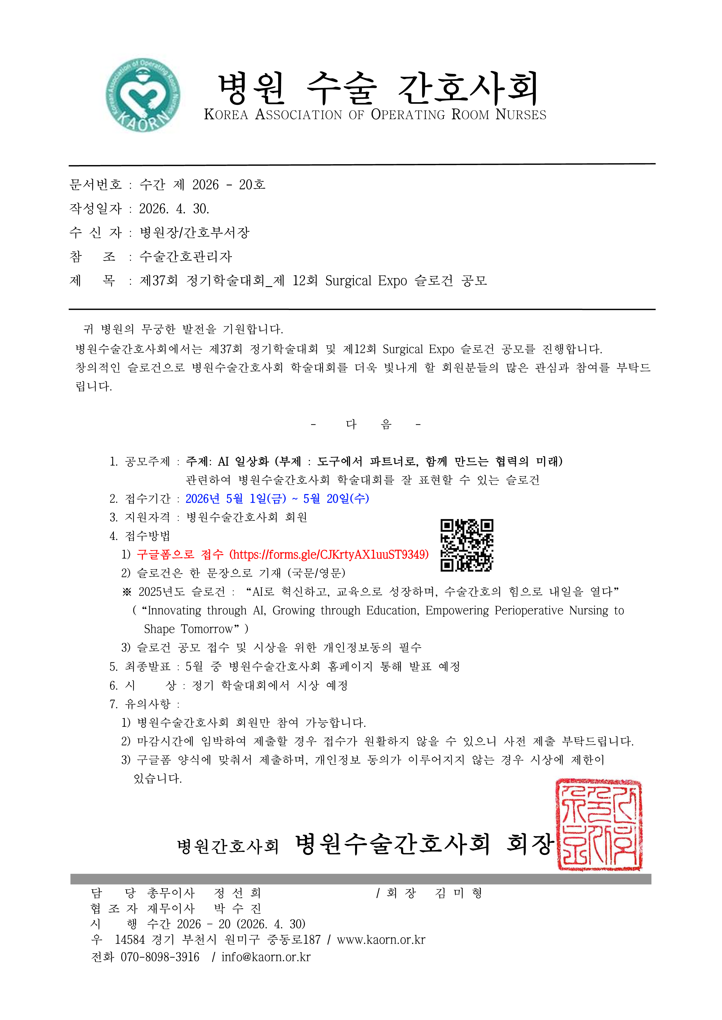 제37회 정기학술대회_제 12회 Surgical Expo 슬로건 공모